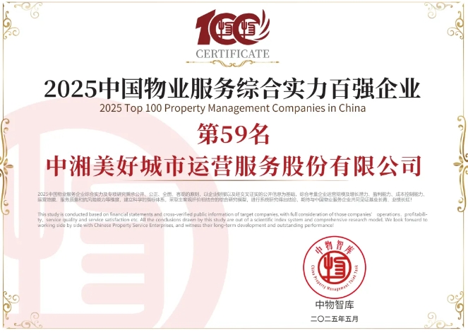 公司信用評(píng)級(jí)為“AAA”,蟬聯(lián)“中國(guó)物業(yè)服務(wù)企業(yè)100強(qiáng)”“中國(guó)物業(yè)國(guó)有企業(yè)50強(qiáng)”等稱(chēng)號(hào),先后榮獲“中國(guó)城市服務(wù)優(yōu)秀品牌企業(yè)”“中國(guó)智慧城市服務(wù)領(lǐng)先企業(yè)”“中國(guó)特色物業(yè)服務(wù)領(lǐng)先企業(yè)”“全國(guó)青年文明號(hào)”“湖南省文明標(biāo)兵單位”等國(guó)家級(jí)、省部級(jí)榮譽(yù)。